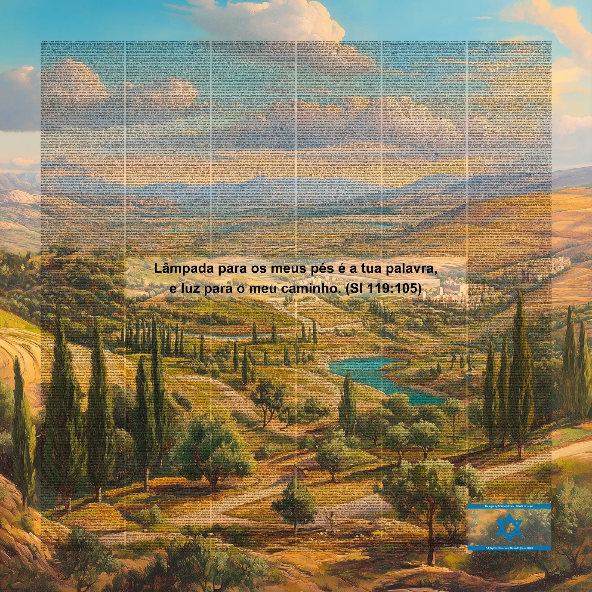 ביצירה מרשימה זו, בגודל 1.2 מטר על 1.2 מטר, כל מזמורי תהילים משתלבים בתוך נופי ארץ ישראל הקדומה. הטקסט המקודש זורם בהרמוניה עם קווי הנוף, יוצר דיאלוג ויזואלי בין המילה הכתובה לבין נופי ארץ ישראל.