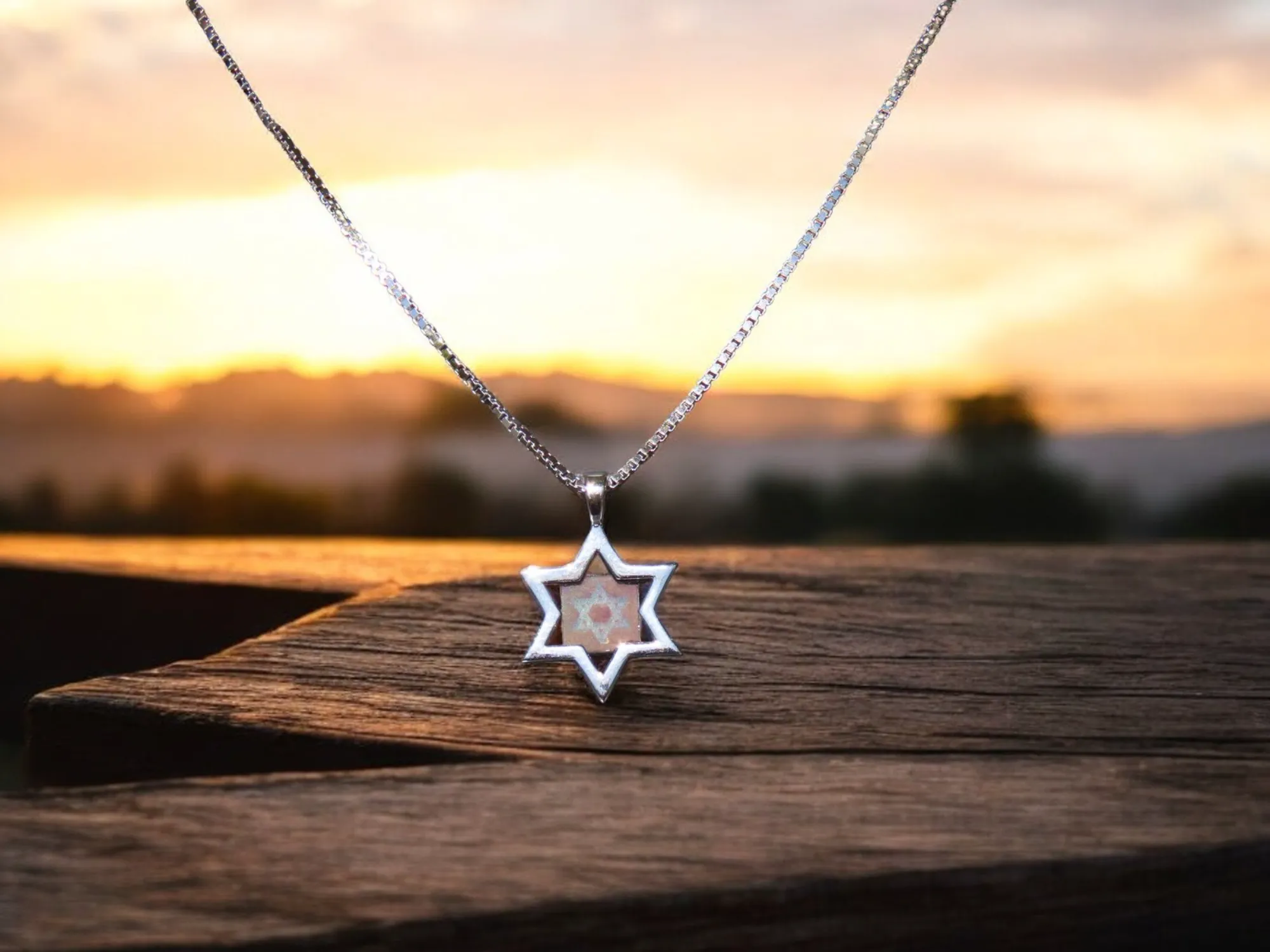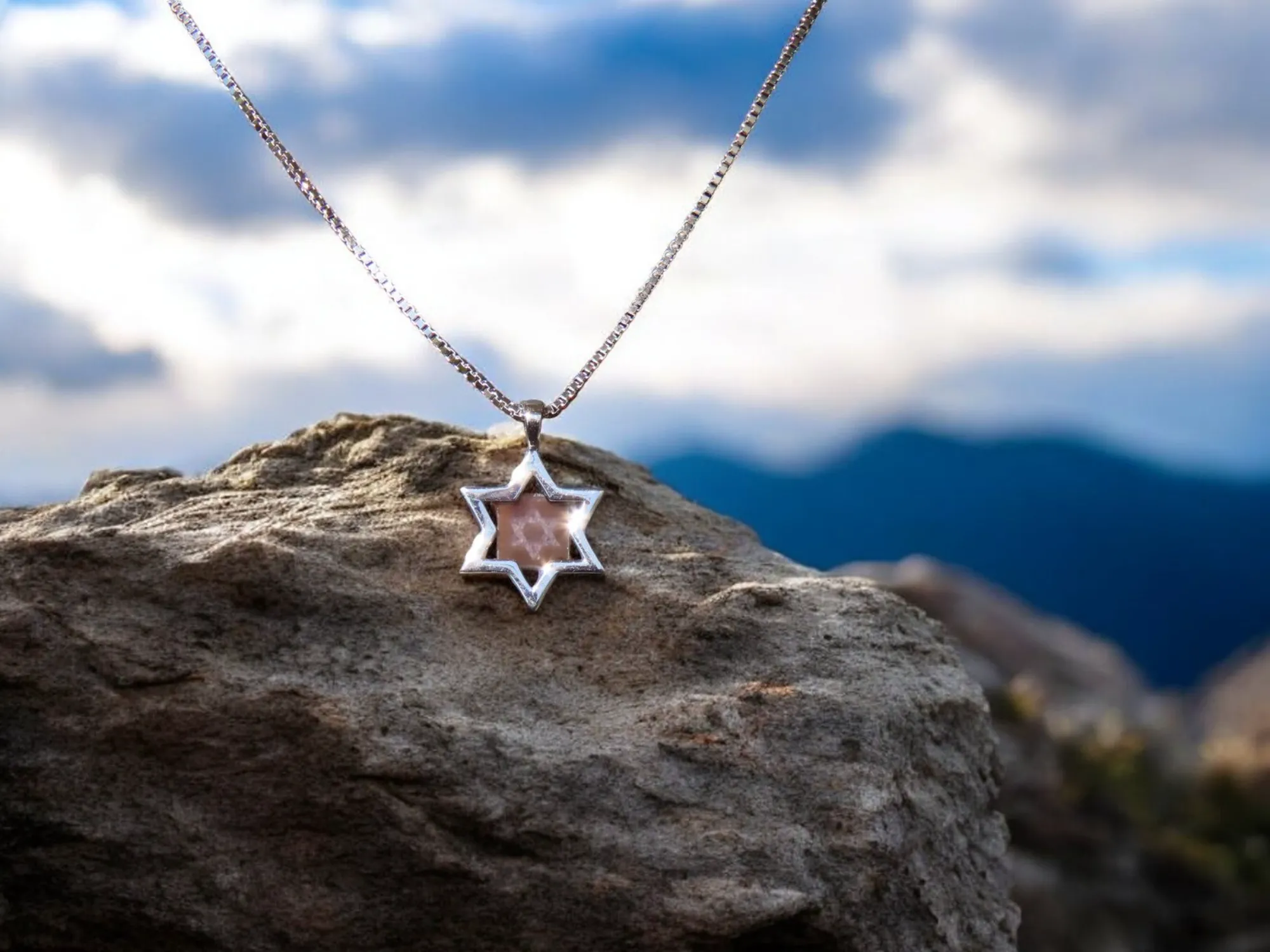 עיצוב ייחודי שמסמל אמונה ונשמה העיצוב המרהיב של מגן דוד מדגיש את השבב הזעיר בלב התכשיט, משלב את אור השמש וכוח המגן האלוקי, תוך שמירה על איזון מופלא בין אסתטיקה לערך רוחני. שבב הזכוכית מוטמע במרכז המגן, ונותן משמעות ייחודית לסמל המגן דוד שהולך איתנו דורות רבים. עיצוב זה נוצר בעבודת אומן מדויקת, המביאה לידי ביטוי אמנות עדינה בשילוב אמונה עמוקה.