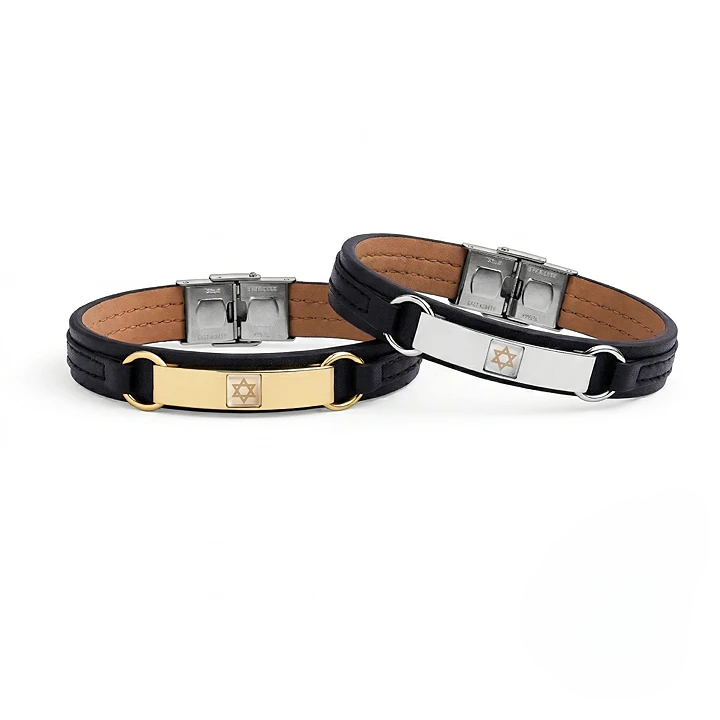 “O Bracelete da Força é mais que uma joia – é a expressão tangível do versículo “estás vestido de honra e majestade” (Salmos 104:1). O bracelete combina couro italiano de alta qualidade com aço inoxidável em um design marcadamente masculino, criando uma aparência forte e impressionante que reflete a força e a majestade com que Deus envolve o mundo.