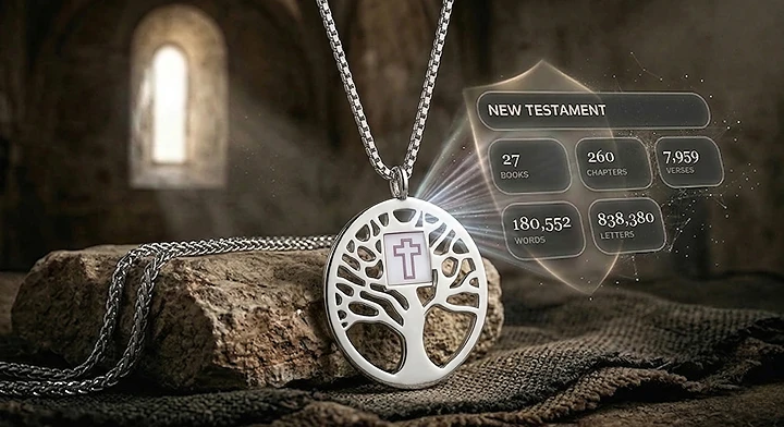 No coração desta magnífica Árvore, um extraordinário chip de vidro miniaturizado carrega toda a Bíblia Sagrada, gravada com avançada tecnologia nano, permitindo que sejamos eternos guardiões da palavra divina. As 304.805 palavras sagradas, gravadas com tecnologia revolucionária neste pequeno chip, são um testemunho de como, mesmo no mundo moderno, podemos abraçar a Árvore da Vida e receber suas infinitas bênçãos de felicidade